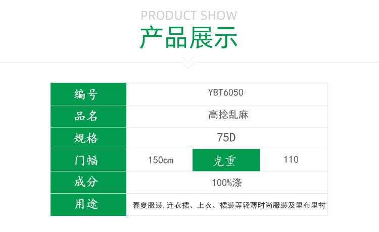 YBT6050 75D高捻亂麻樣品展示